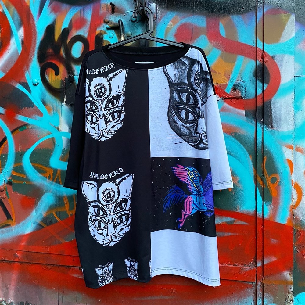 Футболка из серии Print Collage c Young Rich Worldcat и Единорогом.