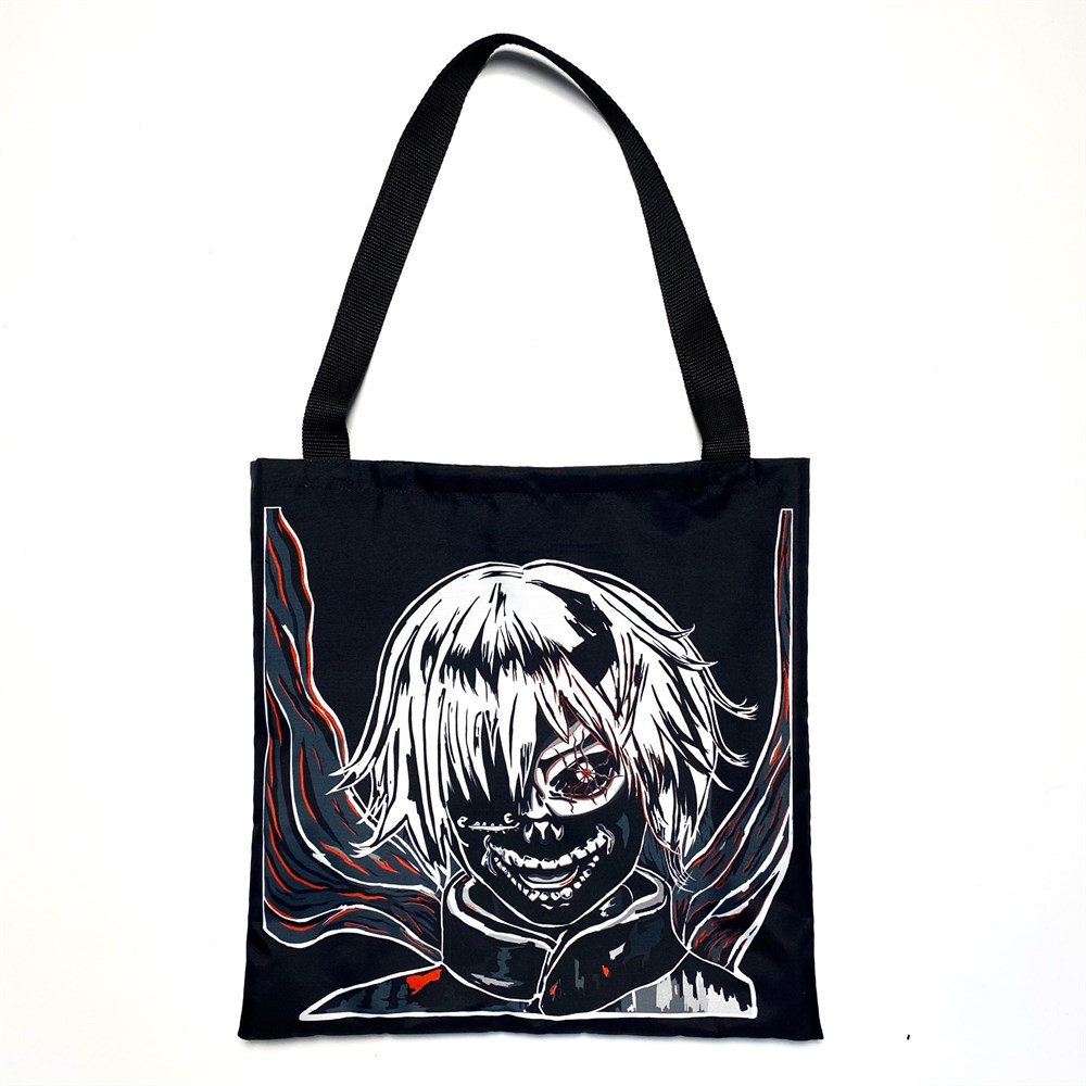 Шоппер посвящён манге •Токийский Гуль•.Гули конечно едят людей, но у гулей тоже есть чувства. Шоппер - это больше чем сумка. Это аксессуар, который делает ваш вид модным, даже если вы с ним оденете самую обычную одежду. Представьте с шопером: обычные треники, любые шорты, простую юбку, сложную юбку, деловой костюм, хвост русалки. Почему же мы так модно воспринимаем шоппер? Всё потому что наше восприятие уже привыкло, что шопперы носят только модники, имеющие тягу к самовыражению.Этот шопер имеет одно большое отделение на двух лямках из водооталкивающей плотной ткани - проявление простоты, минимализма и функциональности в дизайне. Сумочный баухаус вторит идеям модных течений архитектуры. Вечный принт - при соблюдении правил ухода, не стирается. Принт нанесён с двух сторон шоппера.Состав: Водоотталкивающая ткань, 100 % полиэстер.