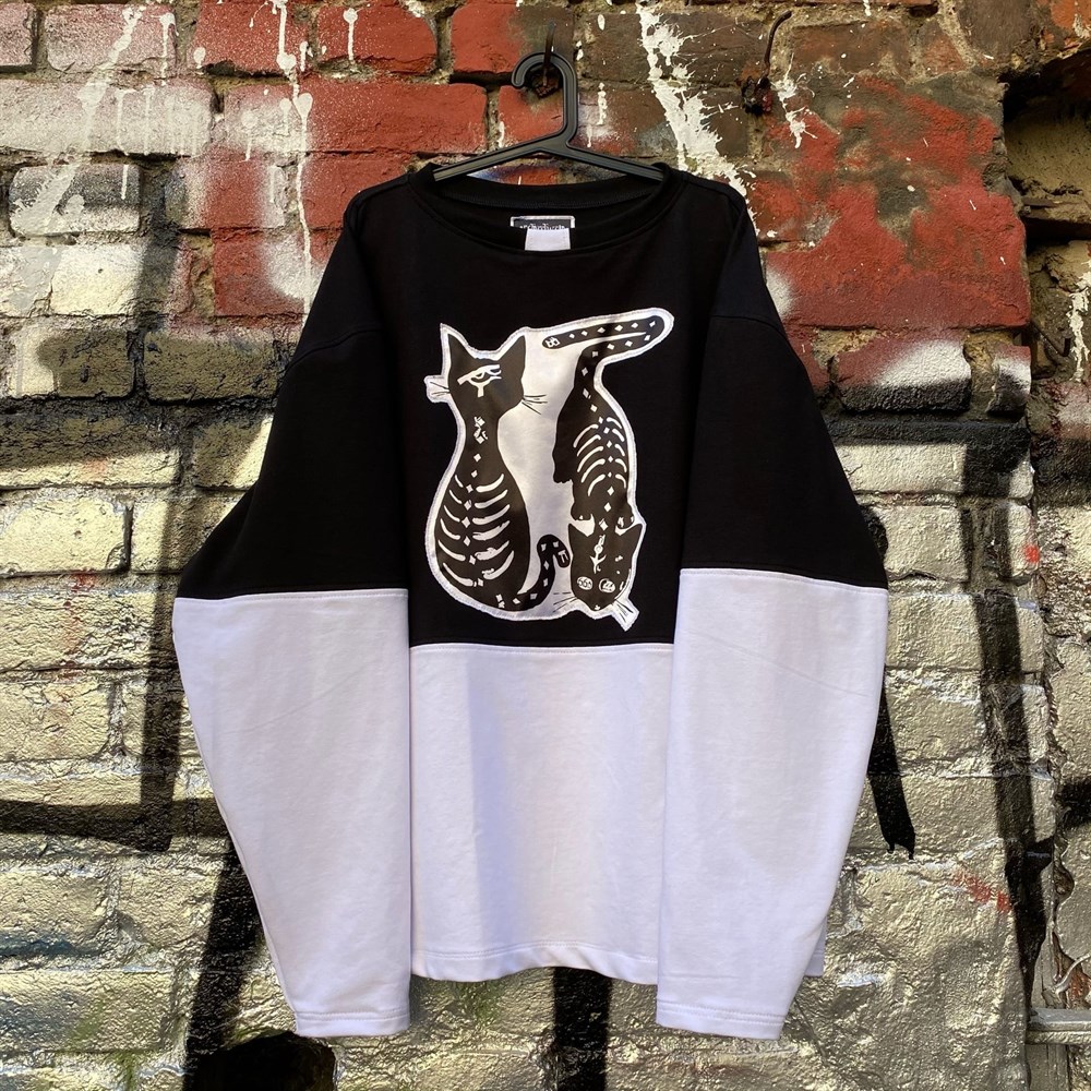 Футер пенье - это очень крутая, нежная и долговечная ткань. Отстрочка швов придаёт свитшоту визуальной добротности. Сшит из тканей двух цветов. Приспущенная линия плеч. Вечный нашивной принт - при соблюдении правил ухода, не стирается.